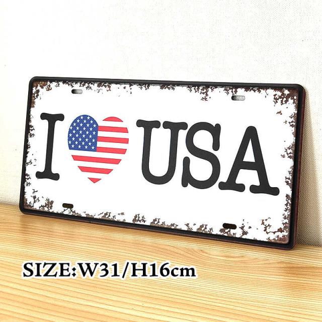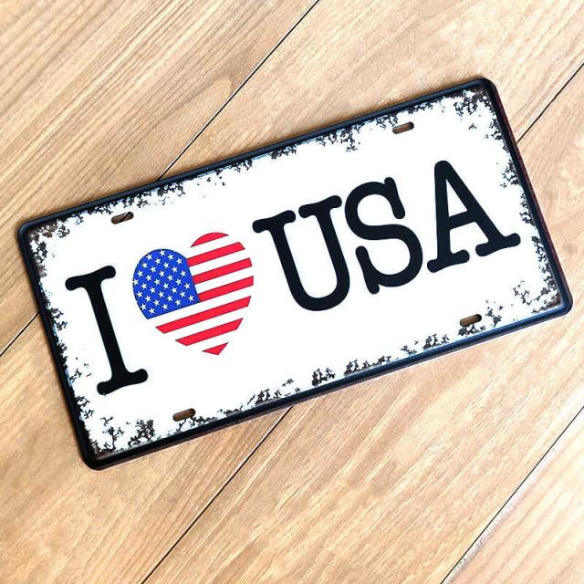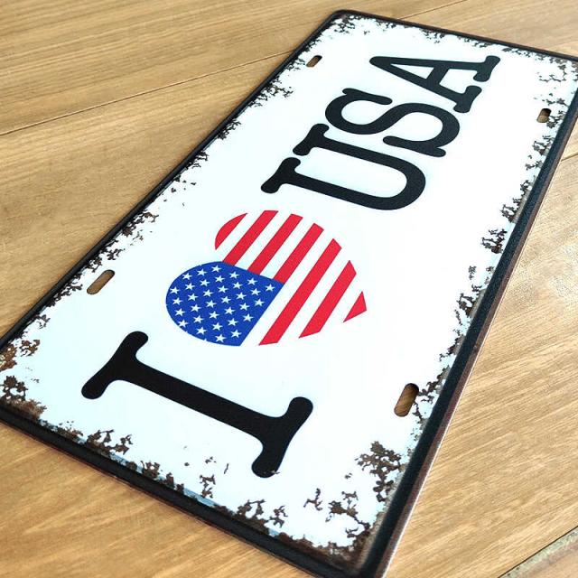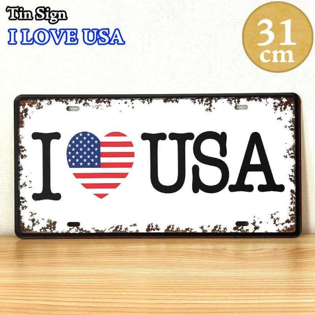 ブリキ看板 ナンバープレート I LOVE USA かわいい アメリカン 雑貨 ティンサイン おしゃれ ビンテージ ディスプレイ 壁飾り バー 店舗 ヴィンテージ プレート インテリア カフェ