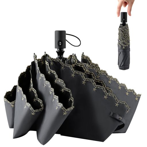 折りたたみ傘 丈夫 軽量 250G 日傘 UVカット 自動開閉 大きい 遮光遮熱 折り畳み傘 女性 晴雨兼用 レディース 紫外線カット 6本骨 耐風撥水 コンパクト 星柄刺繍 母の日プレゼント (ブラック)