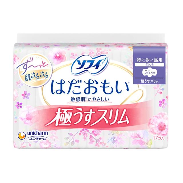 ◆商品名:ソフィ はだおもい 極うすスリム 特に多い昼用 26cm 羽つき (17枚×1)〔ナプキン〕×4個