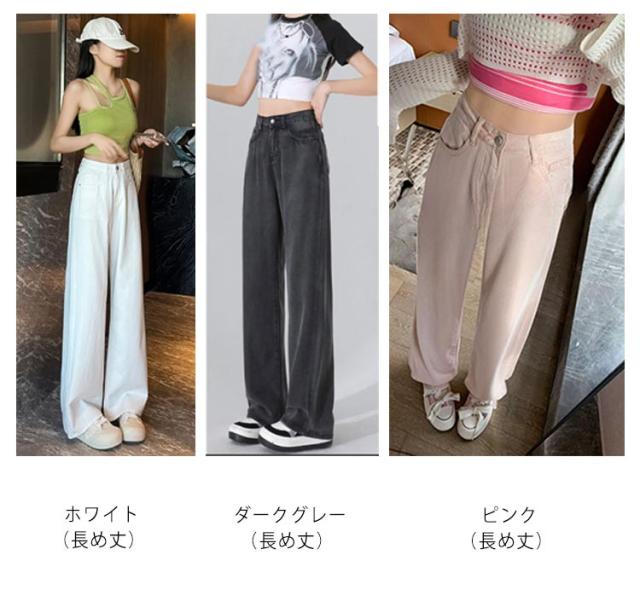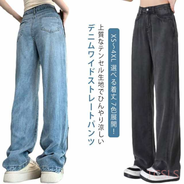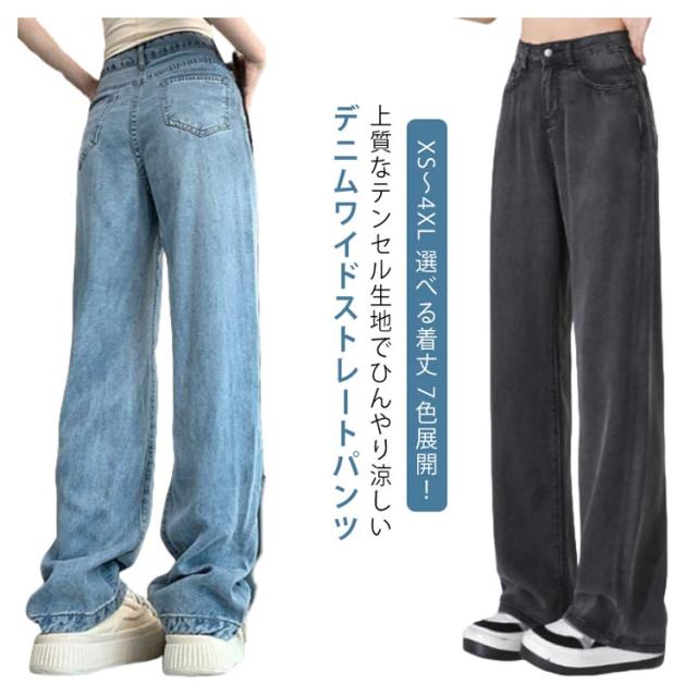 デニムワイドパンツ レディース ひんやり XS-3XL 涼しい ボトムス デニムパンツ XS-3XL ワイドパンツ 夏 ストレート デニム 細見え 冷感 リラックスパンツ ハイウェスト ワイド パンツ ロング丈 ジーンズ 大きいサイズ 夏用 ジーパン 接触冷感 テンセル