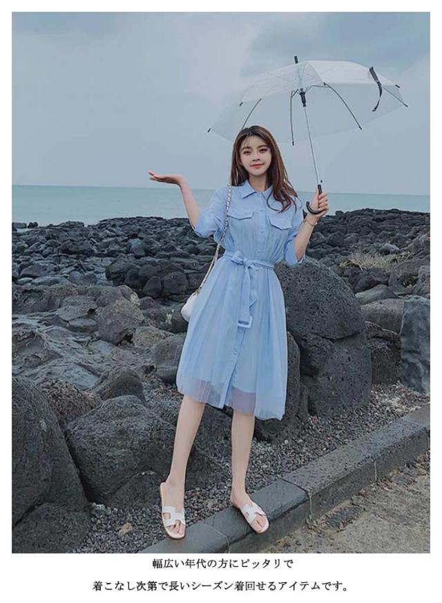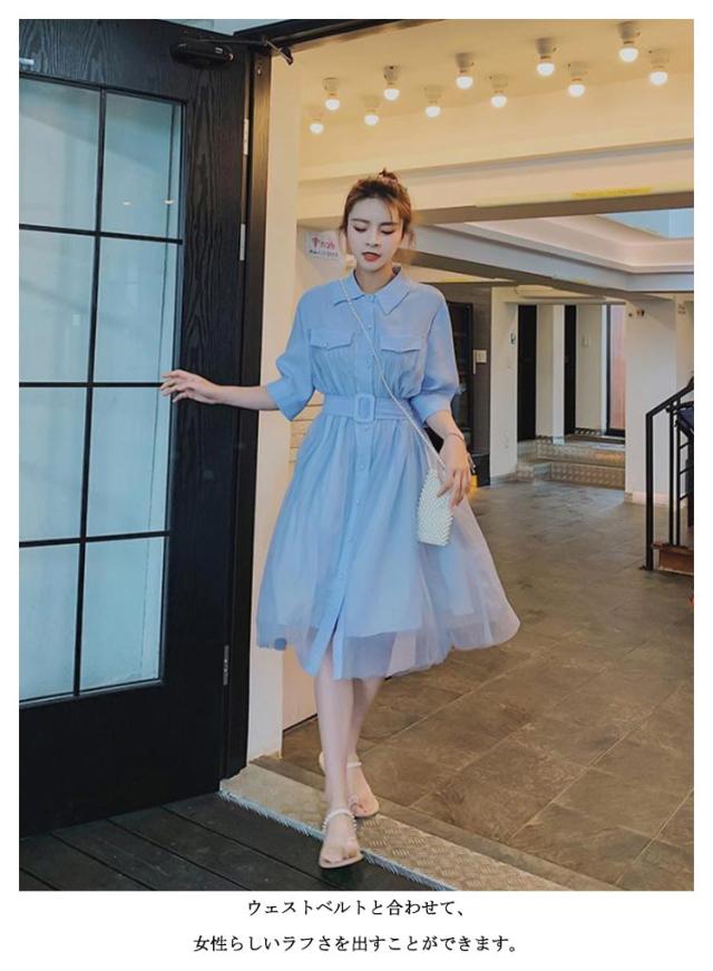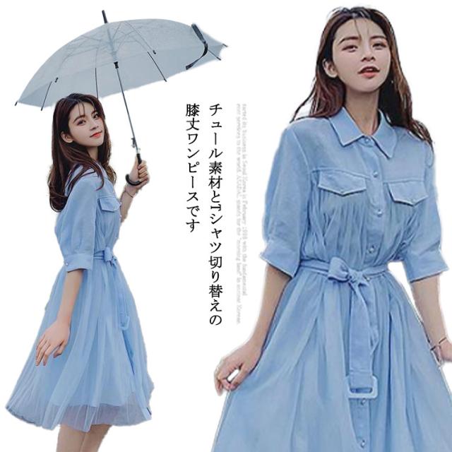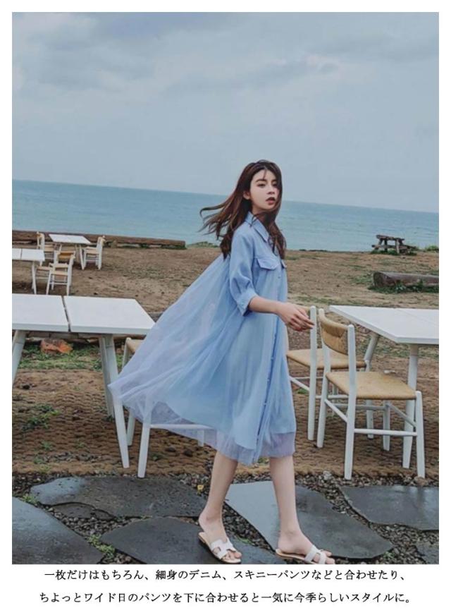 シャツワンピース 羽織り チュニック トップス トップス 五分袖 シャツワンピ ロングシャツ レディース ワンピース チュールワンピース 春 大きいサイズ ゆったり 体型カバー トップス 夏 チュール切り替え