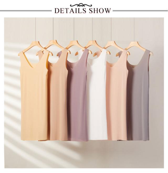 ひんやり 極薄 スリップインナー ロング キャミソール ペチコート シームレス 冷感インナー 冷感 キャミソール 静電気防止 透け防止 接触冷感 膝上丈 膝下丈 ノースリーブ 薄手 スリップ 日焼け止め キャミソールワンピース ペチワンピ ルームウェア 無地 肌着 トップス