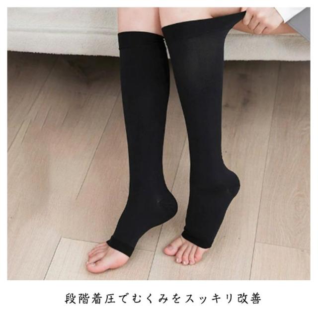 段階着圧 着圧ソックス 着圧ソックス 着圧靴下 静脈瘤 指出し ふくらはぎ サポーター メンズ オープントゥ ハイソックス 着圧ストッキング 引き締め 美脚 下肢静脈 レディース 膝丈 靴下 2足セット むくみ 着圧 強め 疲れにくい 立ち仕事 スクール 就寝用 看護師 昼夜兼用