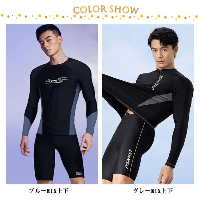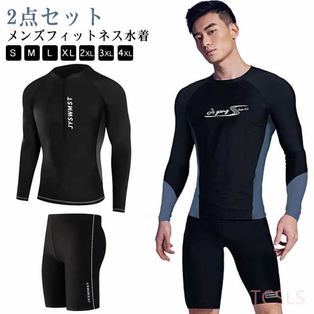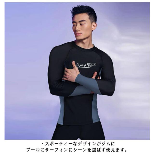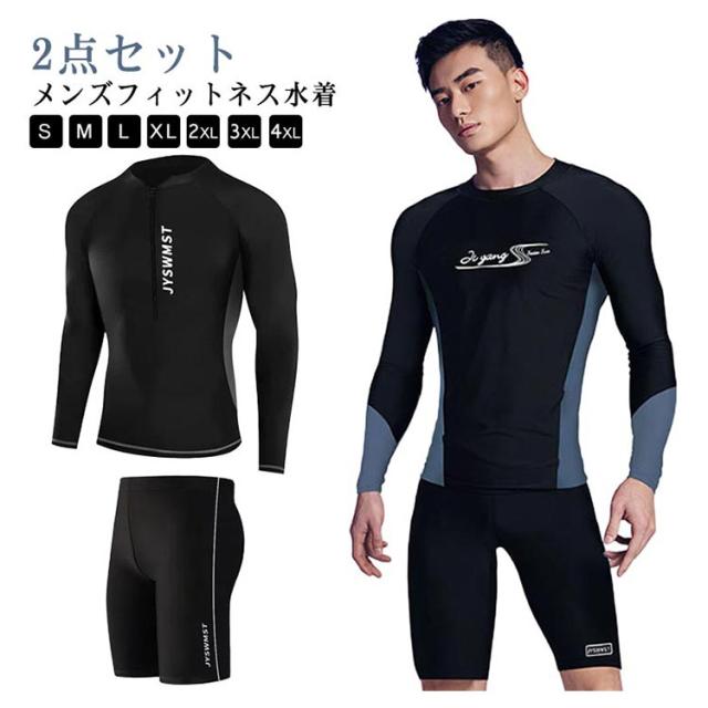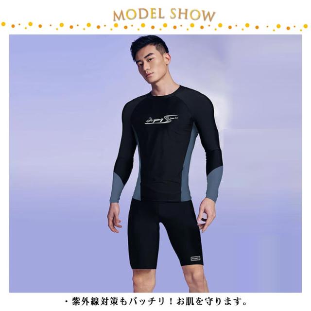 メンズ 水着 上下セット ラッシュガード 長袖 Tシャツ ハーフパンツ ストレッチ セパレートタイプ 紫外線対策 日焼け予防 プール 海 海水浴 サーフィン スポーツウェア フィットネス