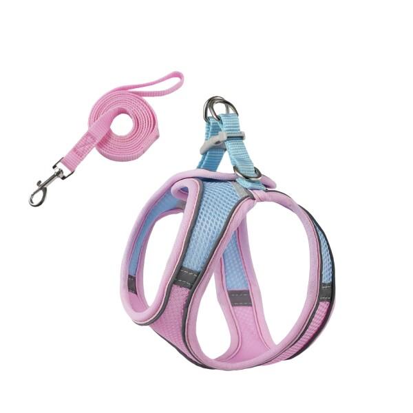 (PB:KS) 犬用 ハーネス 胴輪 抜けない リードセット 小型犬 ペット ベスト 中型犬 散歩 お出かけ 猫用 (ピンク×ブルー(メッシュ), L)