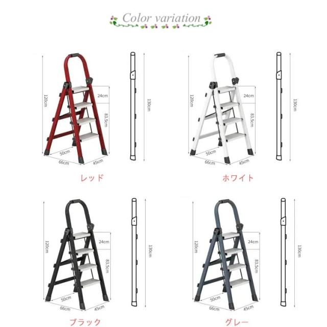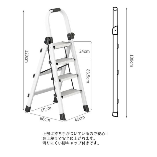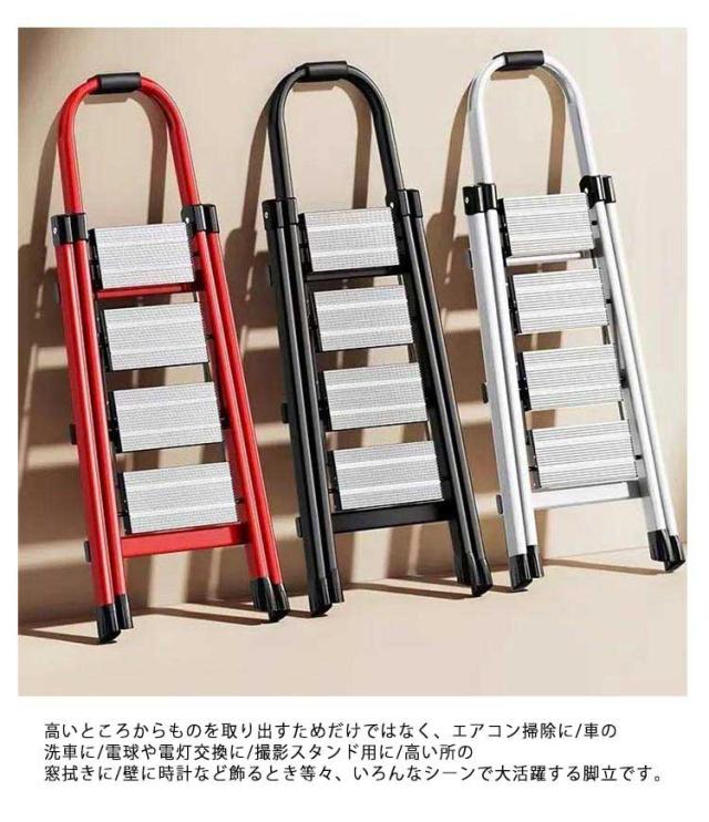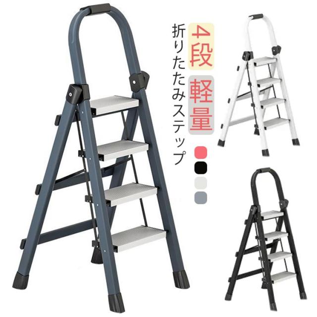 大掃除 収納 白 脚立 4段 ステップ台 軽量 折りたたみ脚立 高所 踏み台 洗車台 折りたたみ ブラック はしご 梯子 ステップラダー 持ち手付き 滑り止め付き ステップチェア コンパクト 軽い アルミ ホワイト 黒 作業