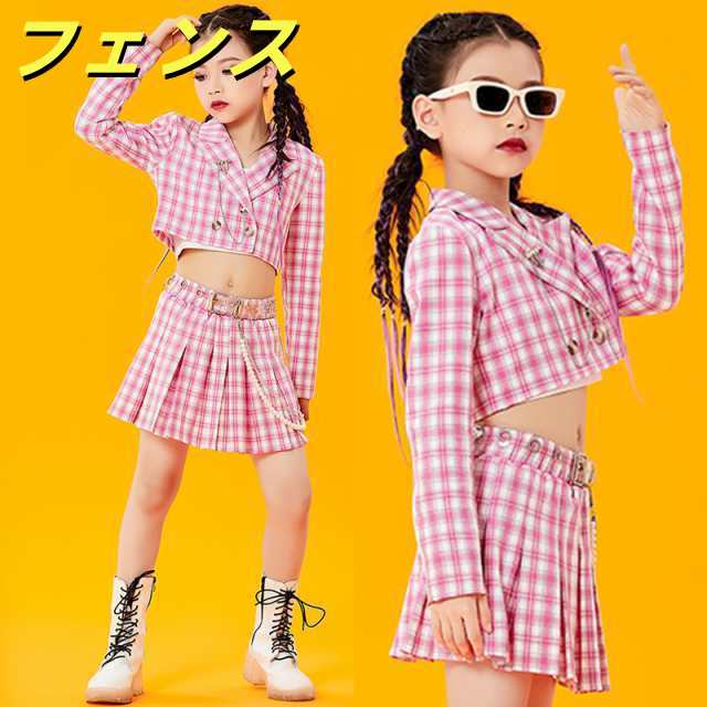 キッズダンス衣装 キッズ セットアップ トップス スカート 韓国 チアダンス衣装 かっこいい ピンク チアダンス衣装 チェック柄 かわいい