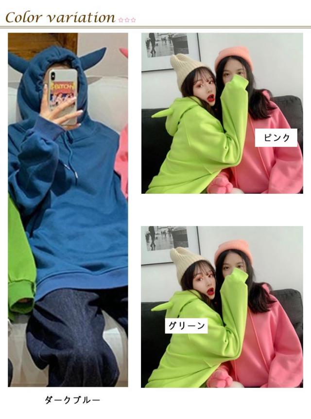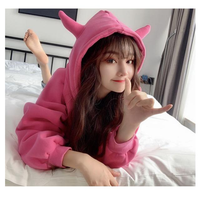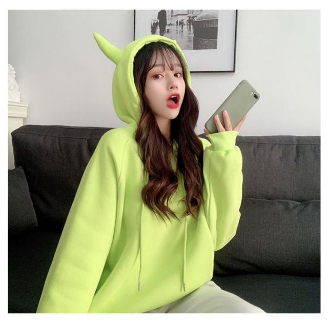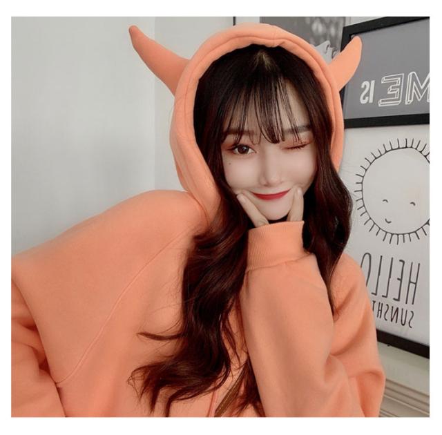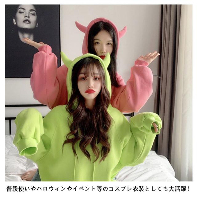 秋冬 プルオーバー パーカー 角つき デビル 悪魔 スウェット パーカー 角付きパーカー おもしろ プルオーバー ツノ 長袖 メンズ 仮装 ビッグシルエット フード付き 大きいサイズ 大きめサイズ おしゃれ ハロウィン コスプレ レディース
