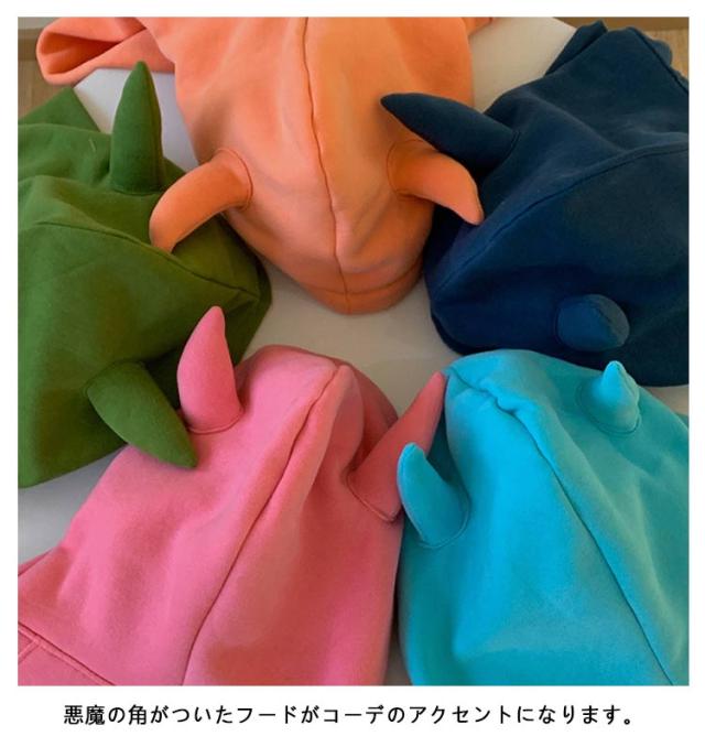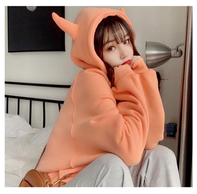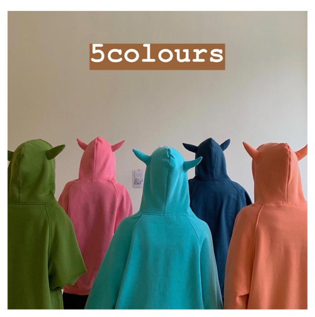 | 悪魔の角がついたデビルパーカー。 ビッグシルエットなので1枚で着ても今季らしいルーズな着こなしが可能です。 悪魔の角がついたフードがコーデのアクセントになります。 普段使いやハロウィンやイベント等のコスプレ衣装としても大活躍! | |