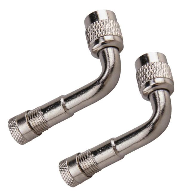 【エアーバルブ90°】バルブエクステンダーは、前後のタイヤバルブを長くするために角度が付けられています。
