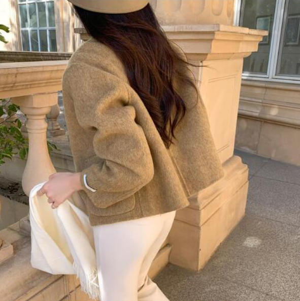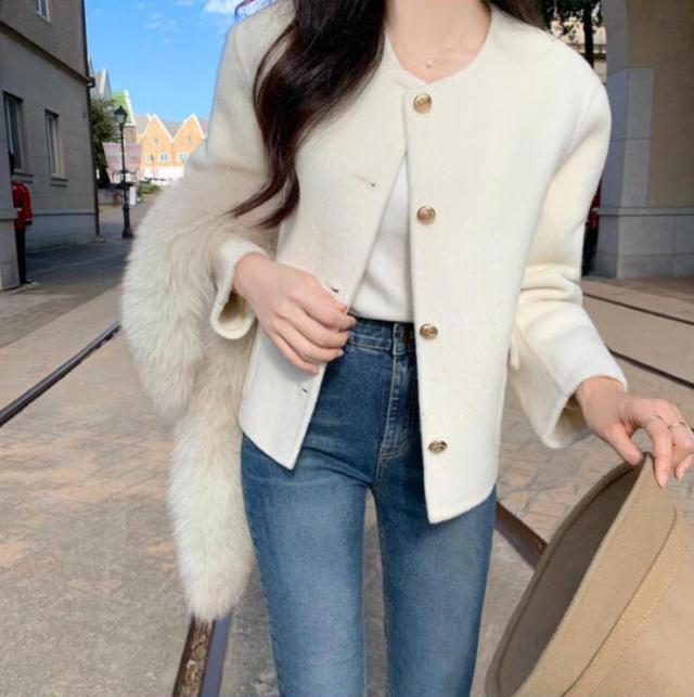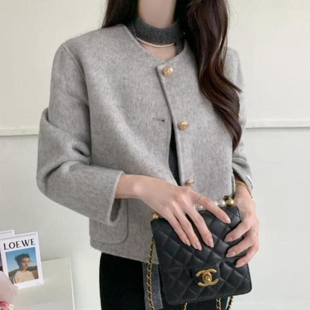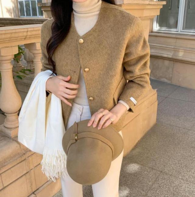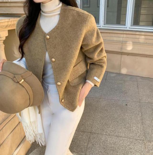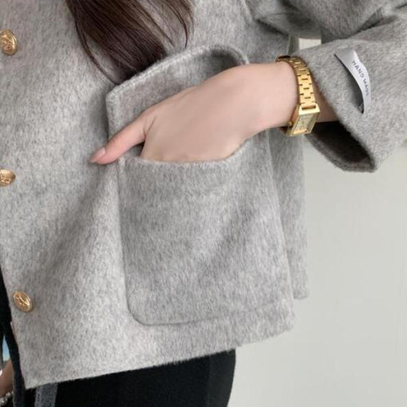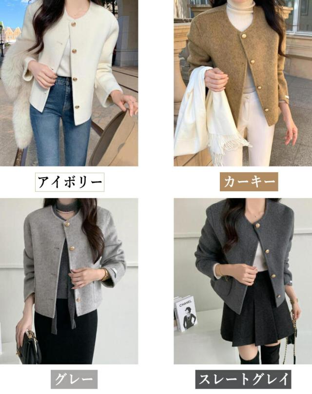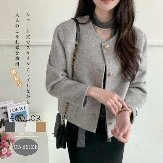 ジャケット レディース 羽織り ショート丈 セレモニー きれいめ アウター 長袖 ノーカラー 襟なし 前開き ボタン ポケット フォーマル スーツ 微起毛 セットインスリーブ ビジネス 結婚式 パーティー ママ オケージョン 秋冬