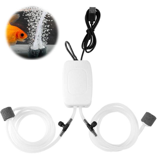 【商品仕様】セット内容:usb水槽用エアーポンプ×1、ソフトチューブ×2、エアストーン×2、USBケーブル×1、吊り下げ用バックル×1;電源線長さ:1m、エアチューブ長さ:1m、ポンプサイズ:5*8cm。