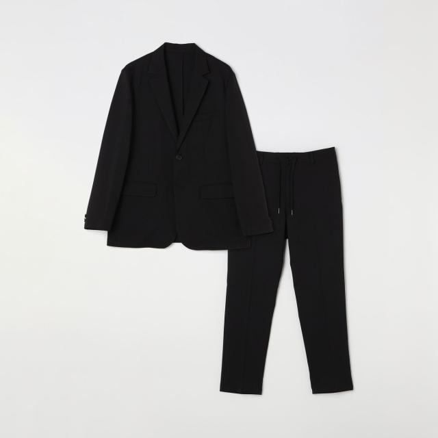 スーツスタイルを意識したキレイめなシルエットのジャケットとイージーパンツのセットアップ。