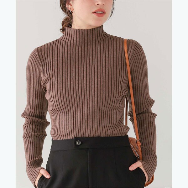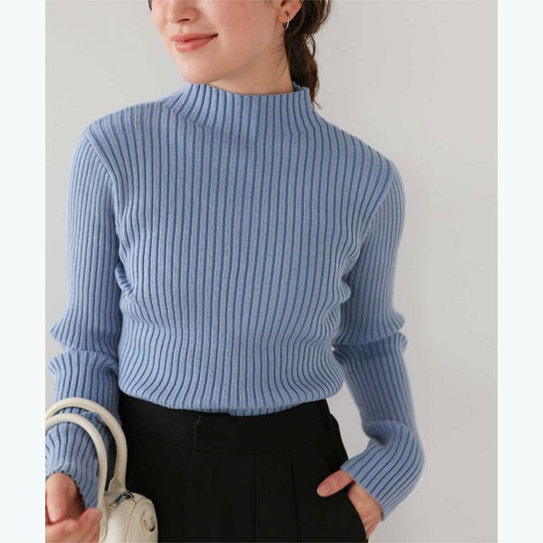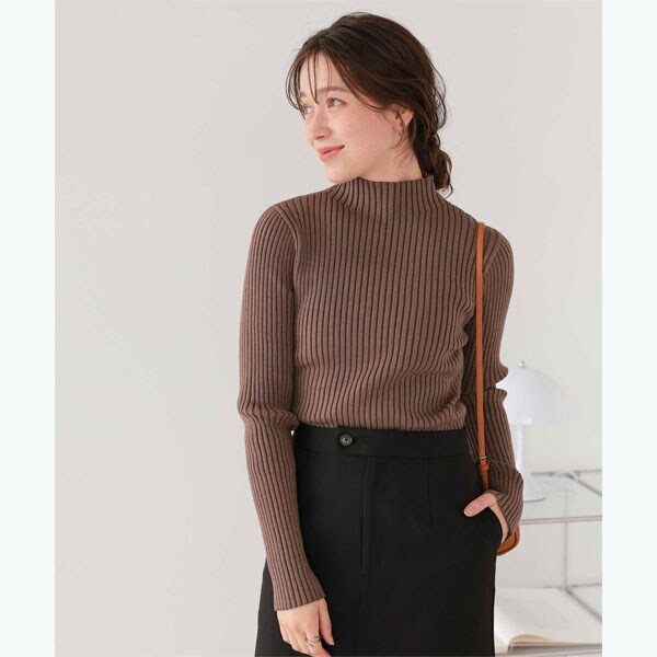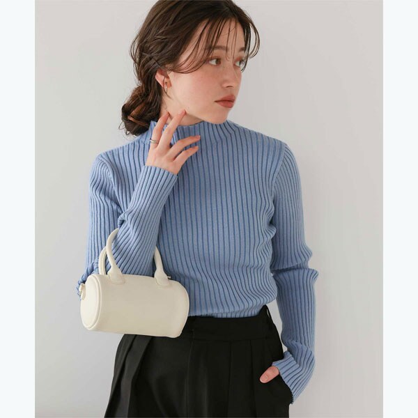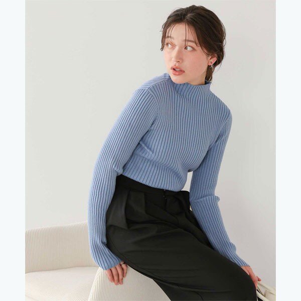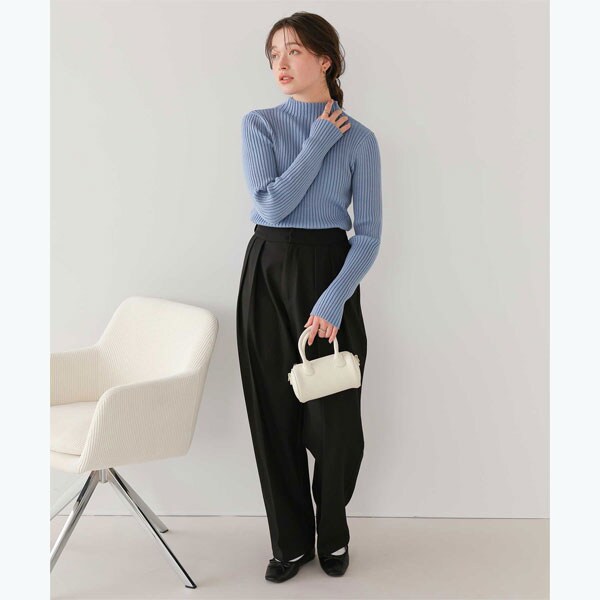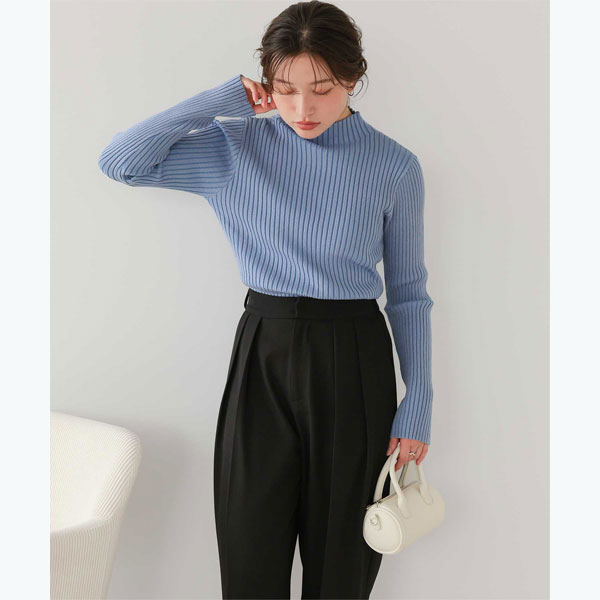 ティティベイト(titivate)/ウォッシャブルボトルネック配色デザインニット
