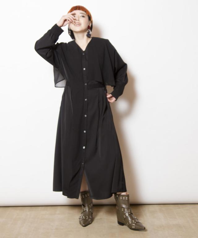 軽やかなシアー素材をレイヤードし、フレアシルエットが女性らしいデザインワンピース。