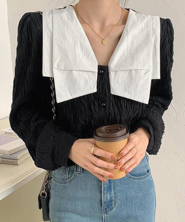 ビッグカラー ワッシャーブラウス 韓国風
