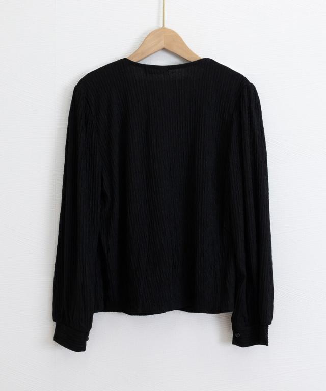 立体感のあるシワ加工がナチュラルな雰囲気を演出する韓国チックなレディースブラウス。