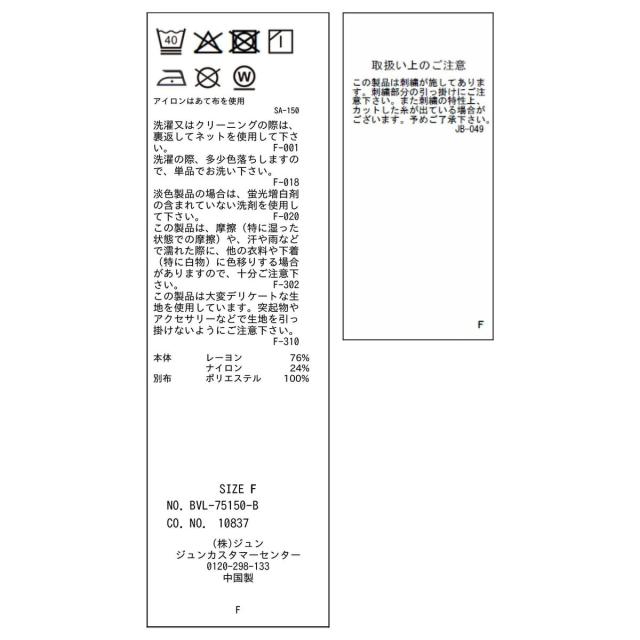 ■素材:(本体) レーヨン 76% ナイロン 24% (別布) ポリエステル 100%