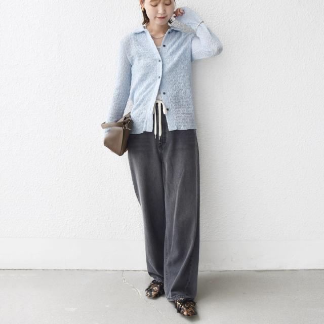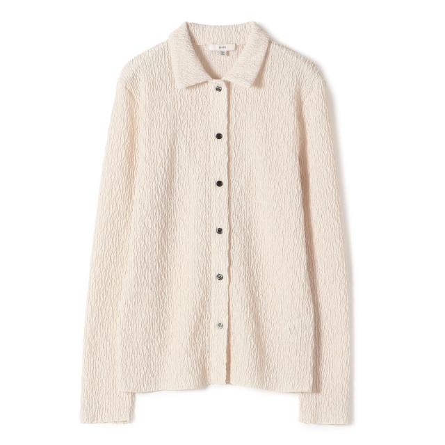 今年の気分にぴったりなシャツ型のカーディガンで、Tシャツやタンクトップの上からさらっと羽織りやすいデザインです。