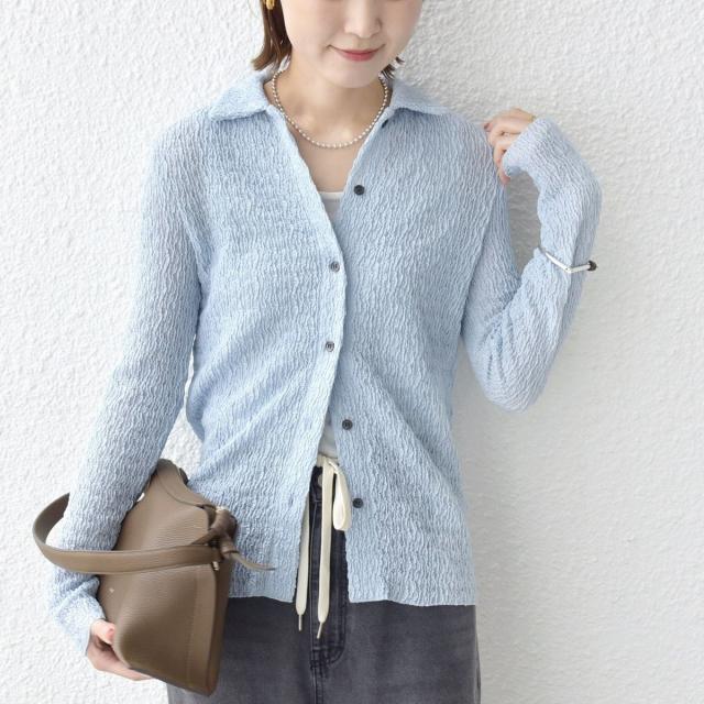 肌離れが良く、さらっと着用できるので冷房対策やUV対策にもぴったりな生地感です。