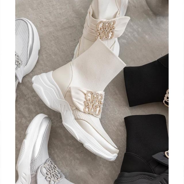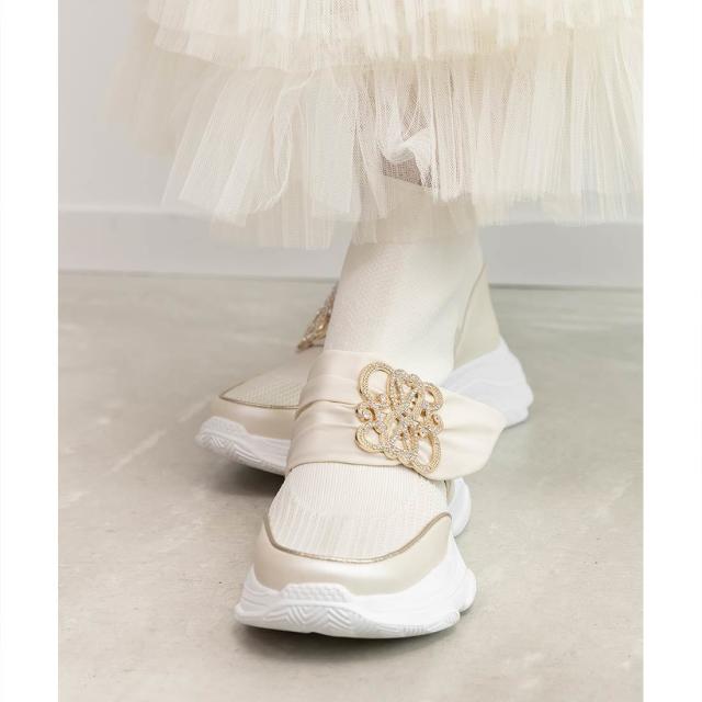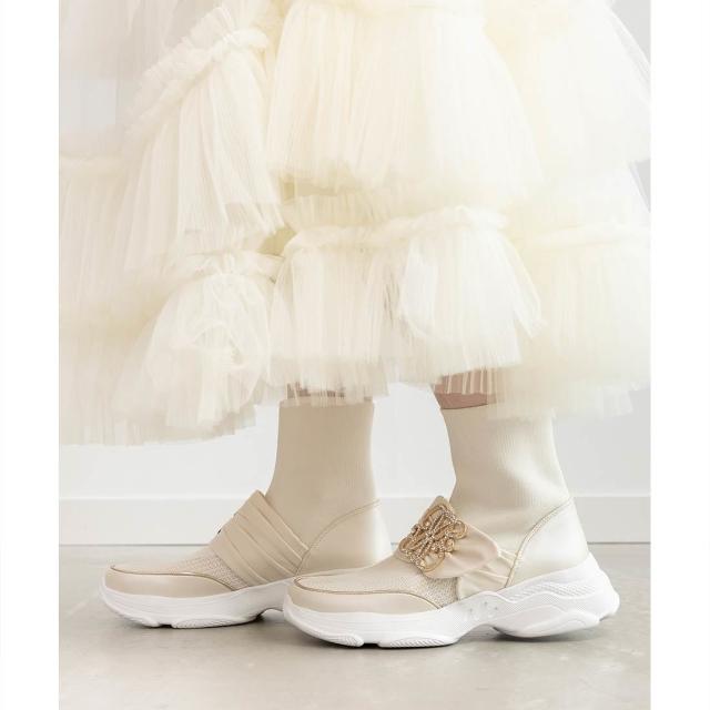 サテン×ビジューパーツが華やかなソックススニーカー。