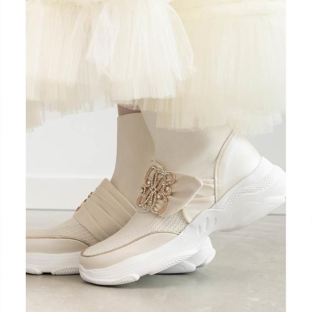 【SUSTAINABLE】ビジューモノグラムパーツソックススニーカー