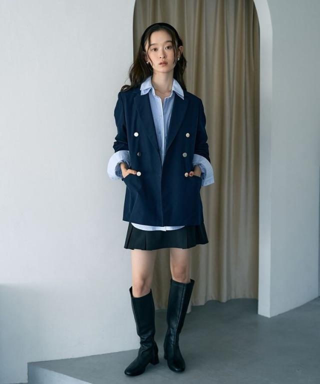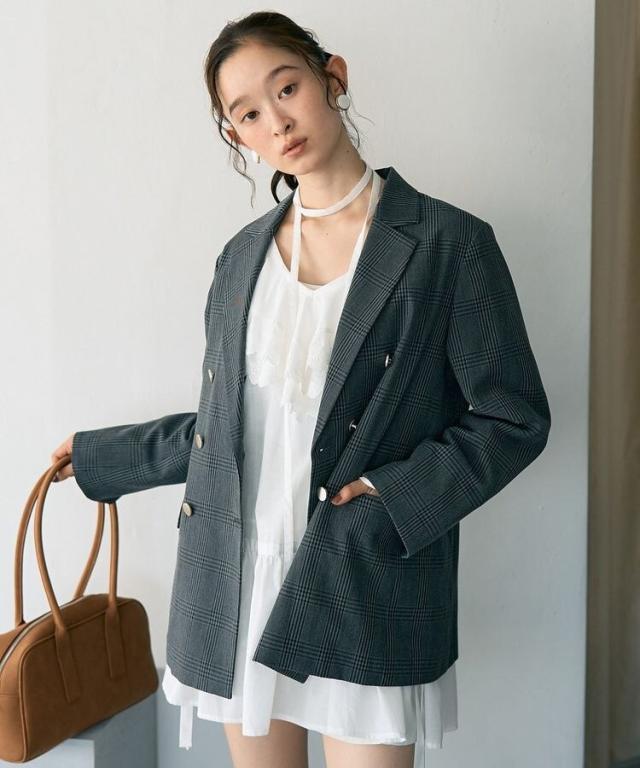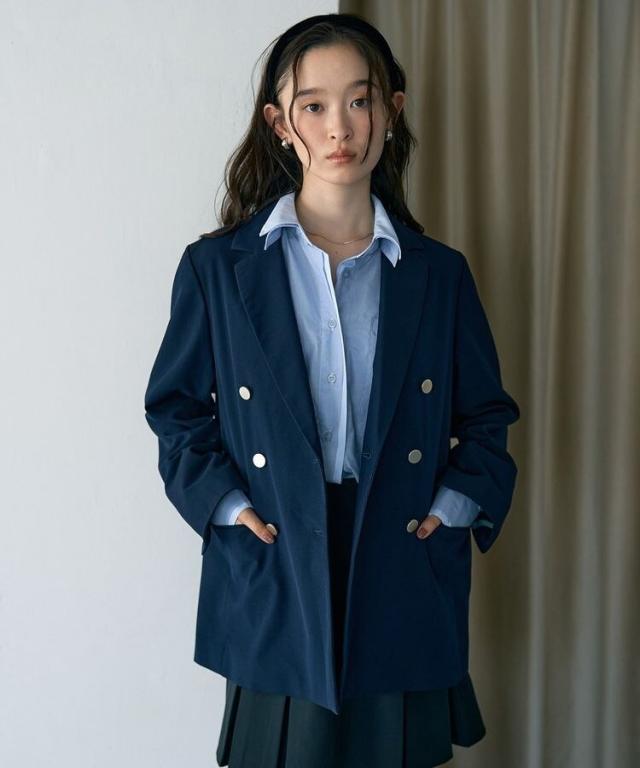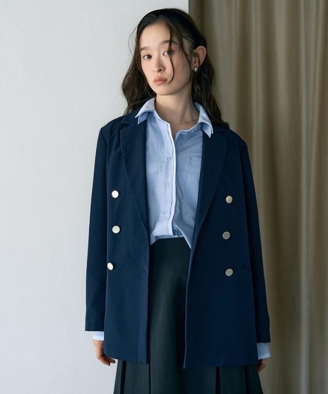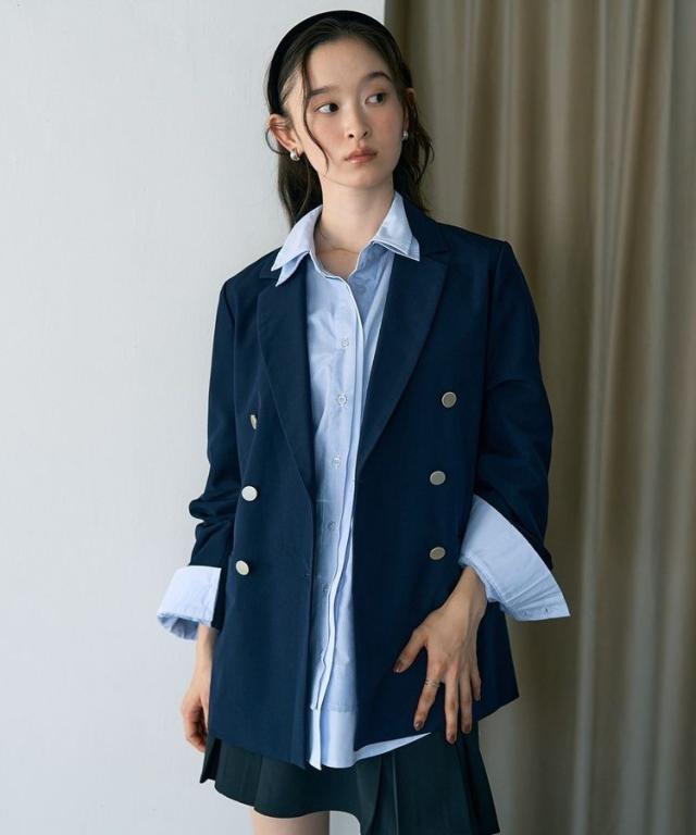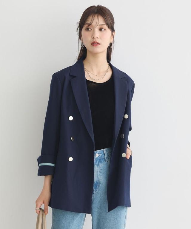 一枚オンするだけで品格漂うスマートな着こなしが叶うテーラードジャケット。ベーシックラペルとダブルブレストに大きめのメタルボタンがアクセントになったデザインです。袖の見返しにはグログランテープを施し、折り返して着用出来るのもお洒落なポイント。いつものスタイルに取り入れるだけでシーズナルなコーディネートをお楽しみいただけます。
