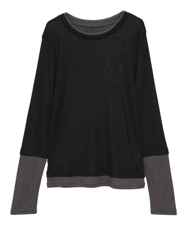 絶妙なバランスの配色レイヤードがこなれ感を演出するプルオーバー。程よくフィットするサイズ感ながら伸縮性のある素材で仕立てた着心地の良さも魅力です。シンプルで合わせるボトムを選ばず、着回しやすいのも嬉しいポイント。メイントップとしてはもちろん、ジャケットのインナーとしても活躍する万能アイテムです。透け感[ややあり]