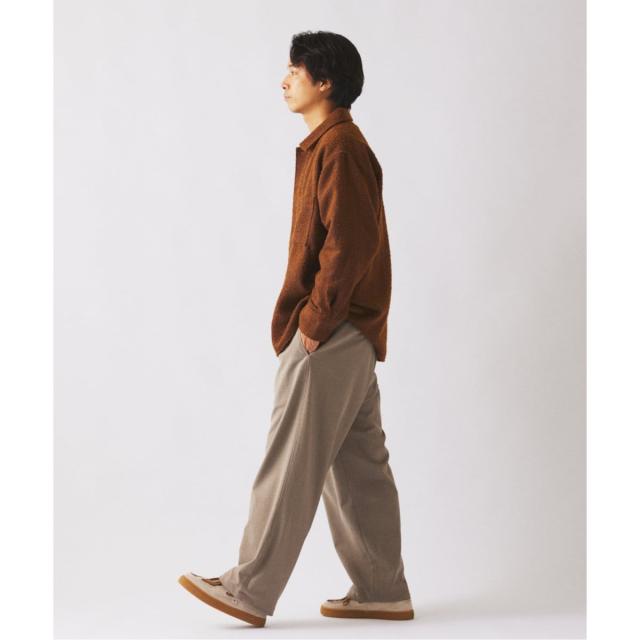 少し厚みのある起毛感のある素材は、触れるとふわっと柔らか。長年着込んだかのような、ヴィンテージライクな風合いが、着るたびに愛着を深めてくれます。