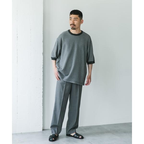ニットアイテムですが、キレイ目ながらもTシャツのようなカジュアルな雰囲気で着用していただけます。