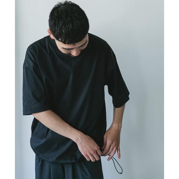 多機能を兼ね備えたアーバンリサーチ独自生地を使用したドローコード付きTシャツ。