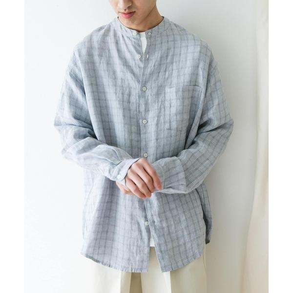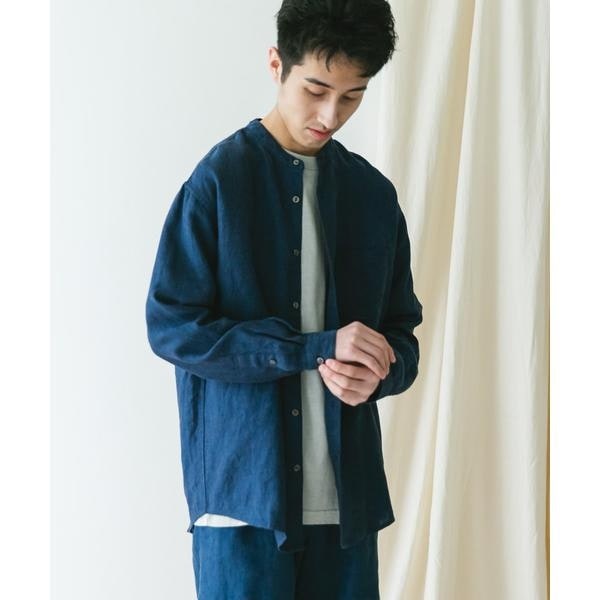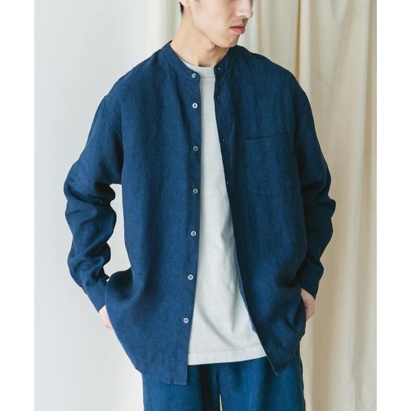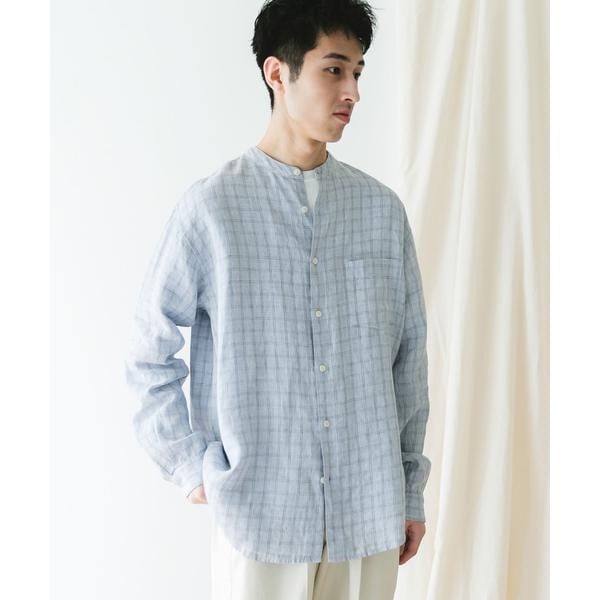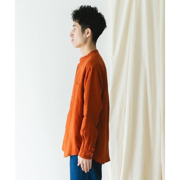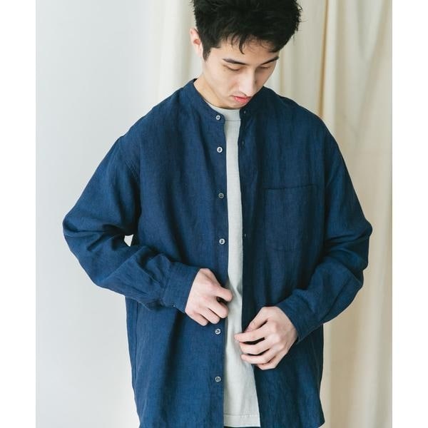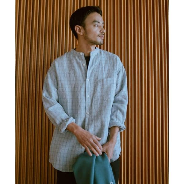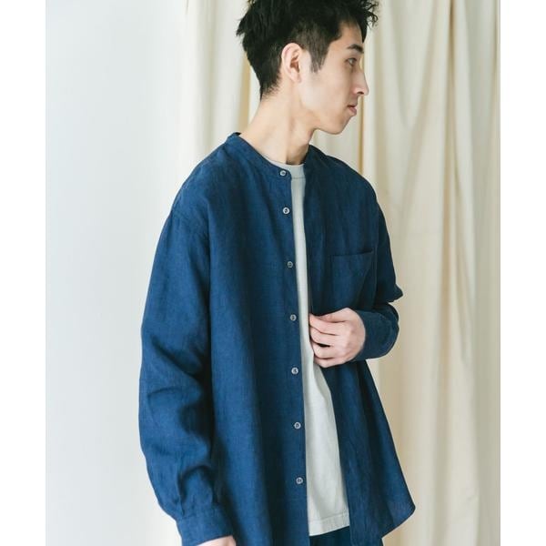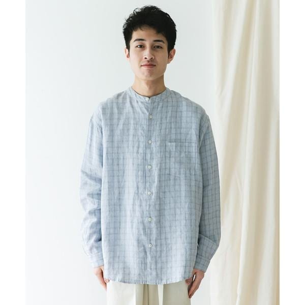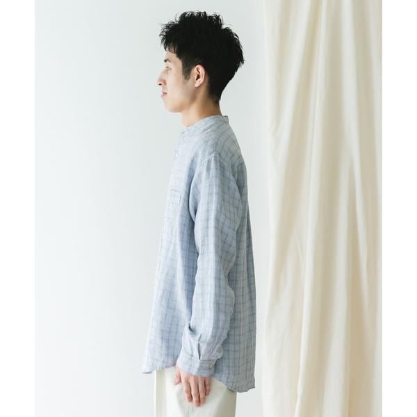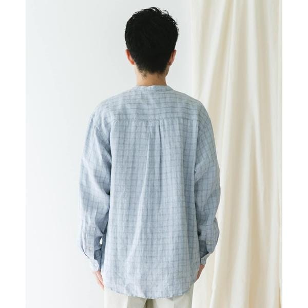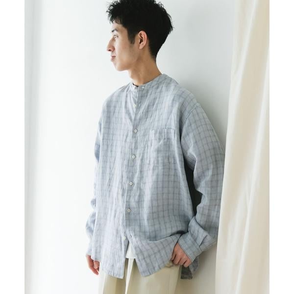 『XLサイズ/WEB限定』シルケットリネンバンドカラーロングスリーブシャツ