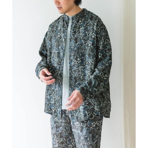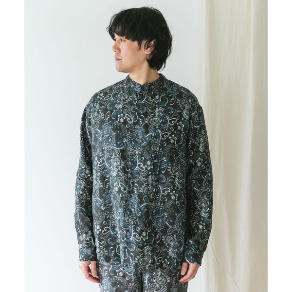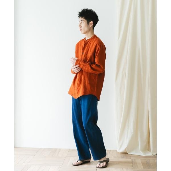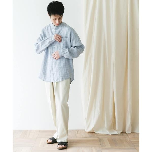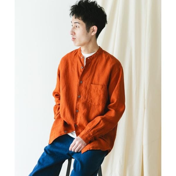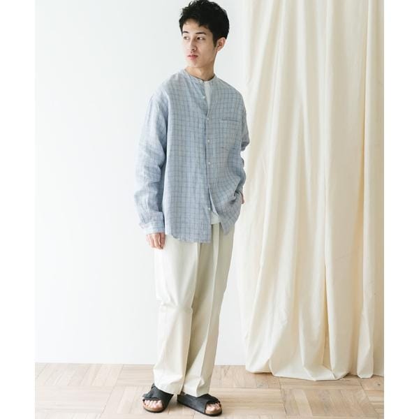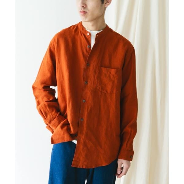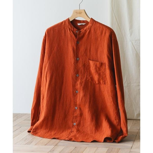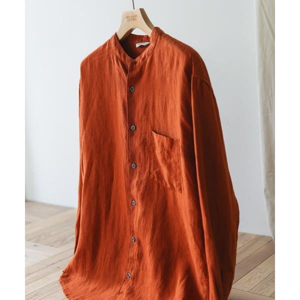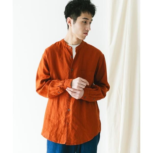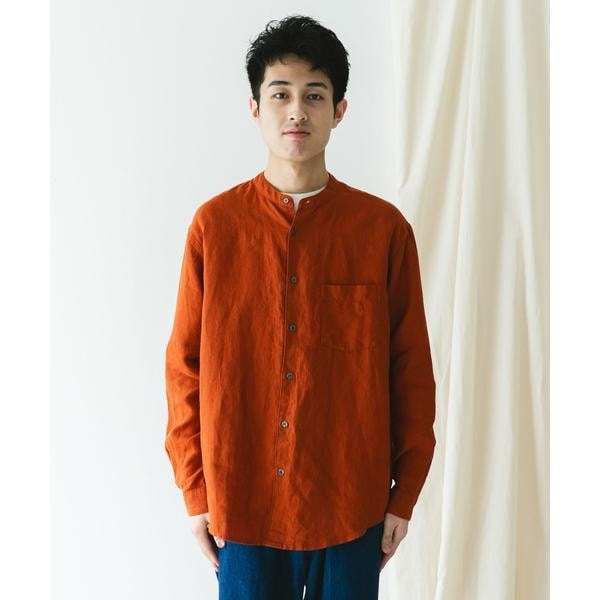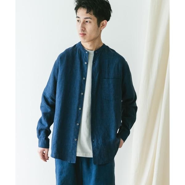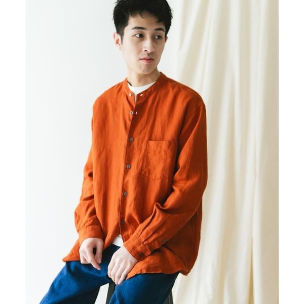 『XLサイズ/WEB限定』シルケットリネンバンドカラーロングスリーブシャツ