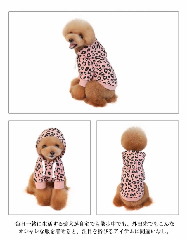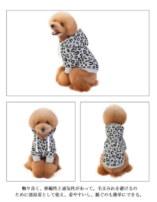送料無料 犬服 ドッグウェア パーカー フード付き ヒョウ柄 豹柄 レオパード トップス 可愛い かわいい おしゃれ トレーナー プルオーバー 抜け毛防止 中型犬 小型犬 猫 お散歩 お出かけ