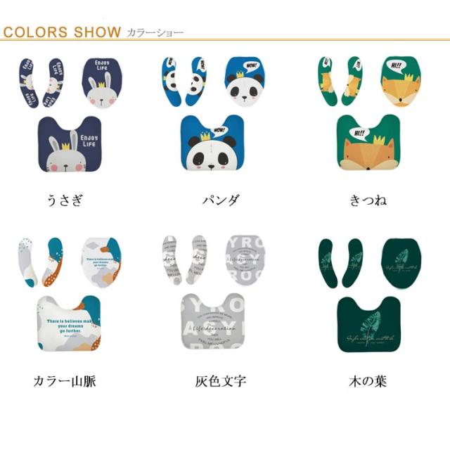 | 大人っぽくシックで洗練されたデザイン。 届いたらすぐに使えるおそろいセットでトイレをコーディネート! トイレマットの裏面には滑りにくい加工を施しているので、 すべりにくく安心してお使いいただけます。 貼るだけ簡単な吸着タイプで、洗濯可能! 繰り返し使えるのでとっても経済的です。 選択種類:うさぎ パンダ きつね カラー山脈 灰色文字 木の葉 落ち着きのあるカラーと癒しの触り心地で、 リラックスできるトイレを演出します。 ※お使用いのモニターや部屋の照明により実際の商品とは色味が異なる場合があります。ご了承ください。 セット内容 [ フタカバー ] 兼用タイプ U型 使用できます [ 足元マット] 約49*54CM / 裏面は滑りにくい加工済 [ 吸着便座シート ] U型便座に使用可能 選択種類:うさぎ パンダ きつね カラー山脈 灰色文字 木の葉 | |