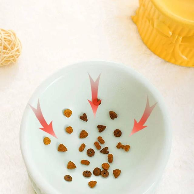 猫 食器 傾斜 食べやすい 陶器 フードボウル 斜め 犬 高さがある ペット用 おしゃれ 餌入れ エサ入れ 水飲み ボウル 水入れ お皿 ごはん皿 水分補給 斜め 可愛い リボン 5色 送料無料