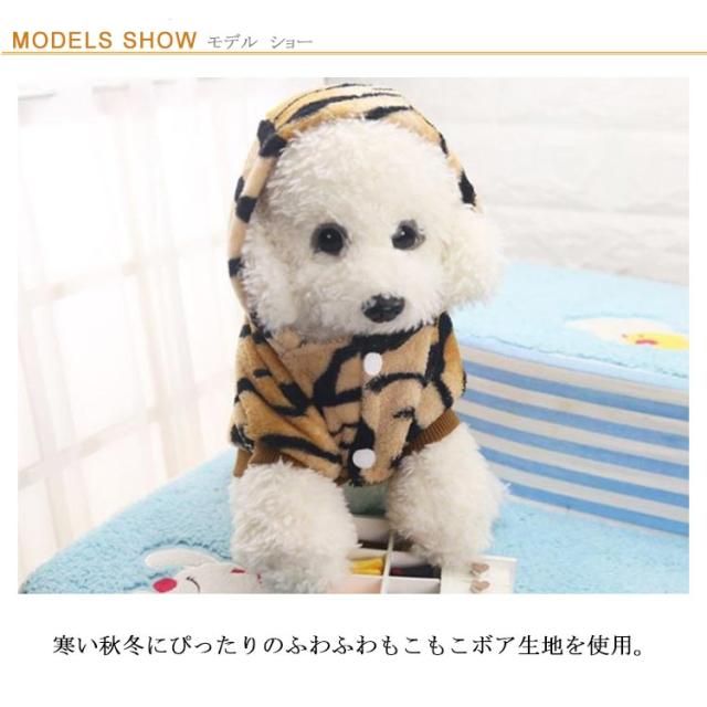 犬服 ドッグウェア カバーオール パーカー 虎柄 タイガー柄 秋冬 フード付 ボア いぬ服 つなぎ 小型犬 中型犬 ペット服 秋服 冬服 ふわふわ もこもこ 暖かい 防寒 裏起毛 寅柄パーカー 正月 寅年 干支 年賀状 おしゃれ 可愛い