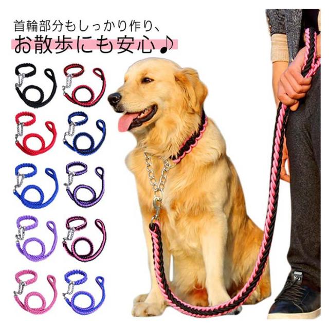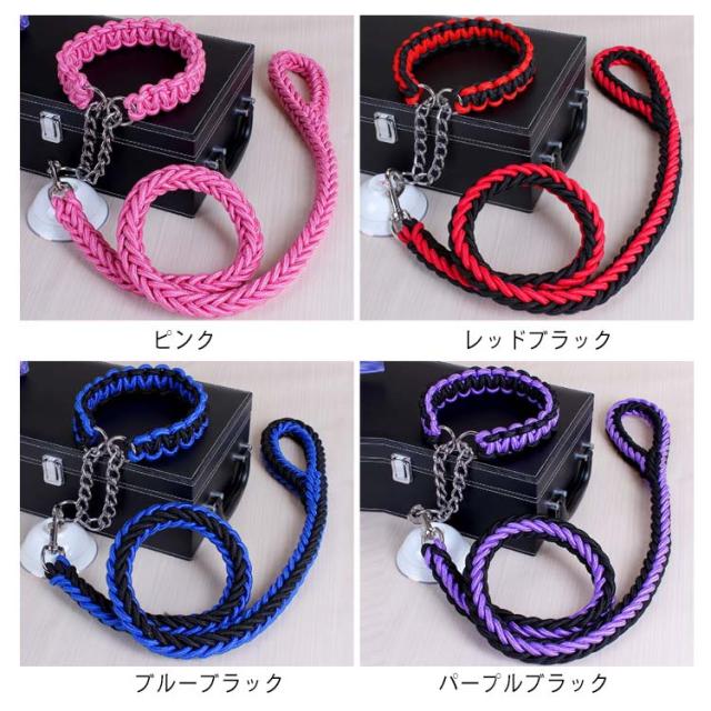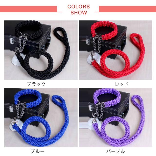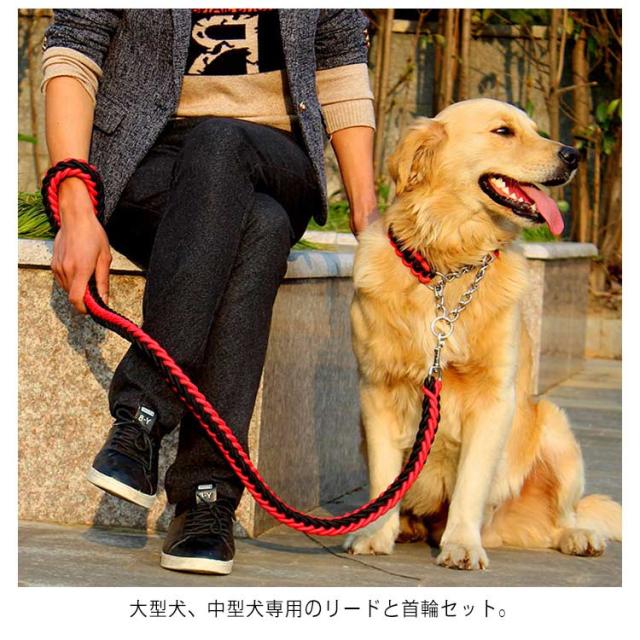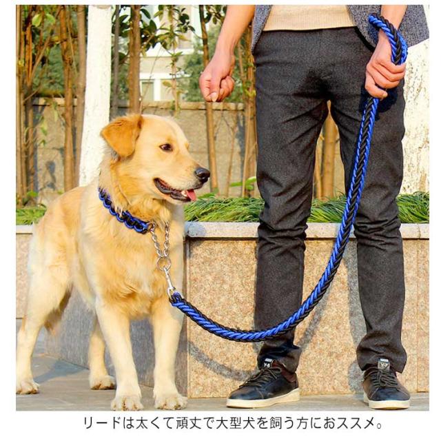リード 犬 送料無料 太く 首輪 首輪セット リードセット 小型犬 中型犬 大型犬 犬用リード 頑丈 編み紐 2点セット 丈夫 極太 噛み癖 防止 ドッググッズ 散歩 お出かけ 送料無料 ペット ペット用 おでかけ用品 リード