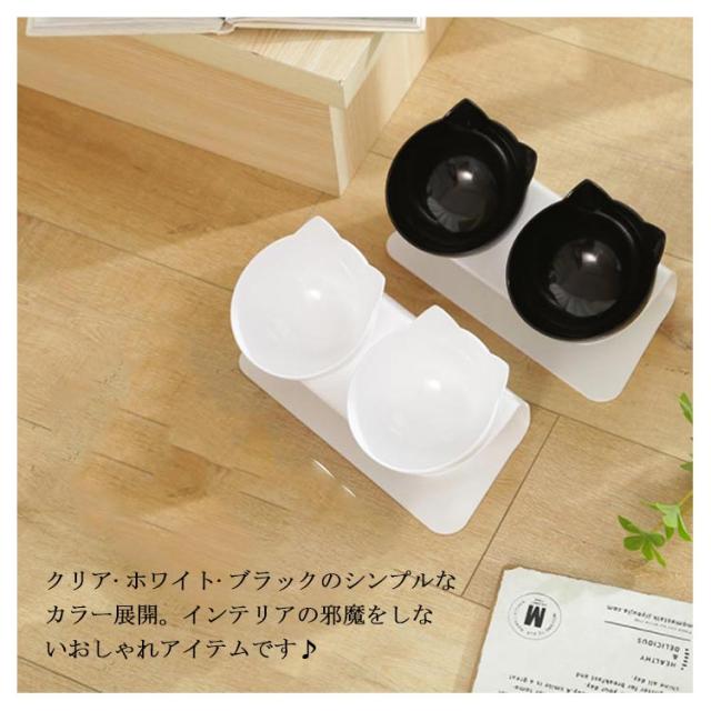 | ペット用フードスタンド 適度な高さと傾斜のあるご飯台はワンちゃん猫ちゃんにとってとても食べやすくなります。 ボウルが丁度よい角度に傾いているので食べる際の負担を軽減!楽な姿勢で食事ができます。 耐久性に優れたプラスチック製なので長くご使用いただけます! クリア?ホワイト?ブラックのシンプルなカラー展開。インテリアの邪魔をしないおしゃれアイテムです♪ | |