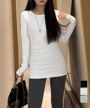 肩開きデザインがセクシーで女性らしい長袖Tシャツ