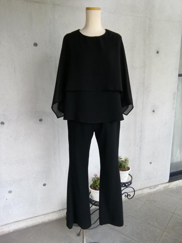 喪服 《M〜3L》夏に涼しく着られるケープデザインブラックフォーマルブラウス 127301-20