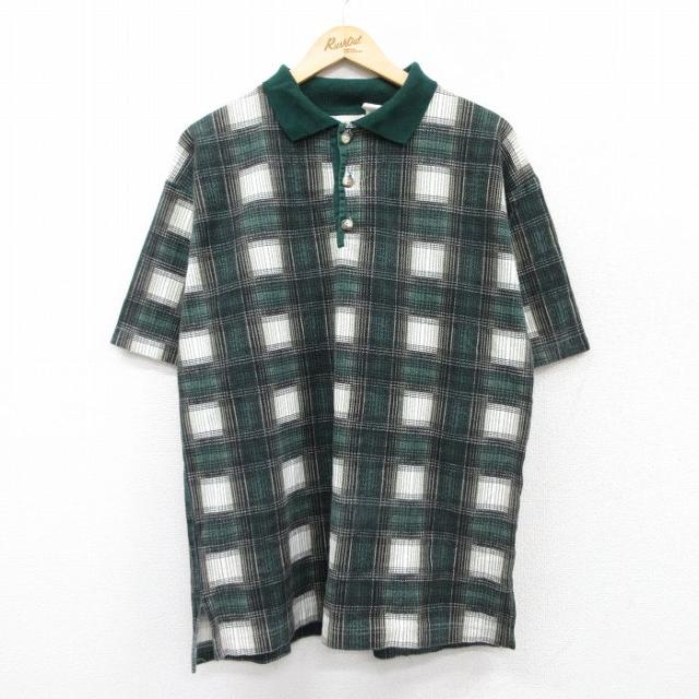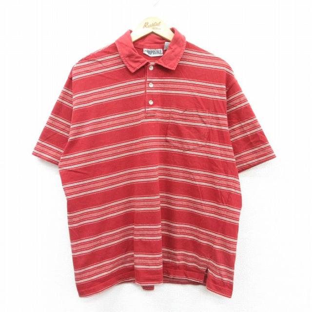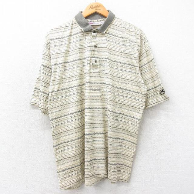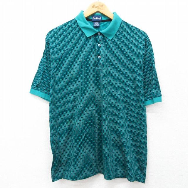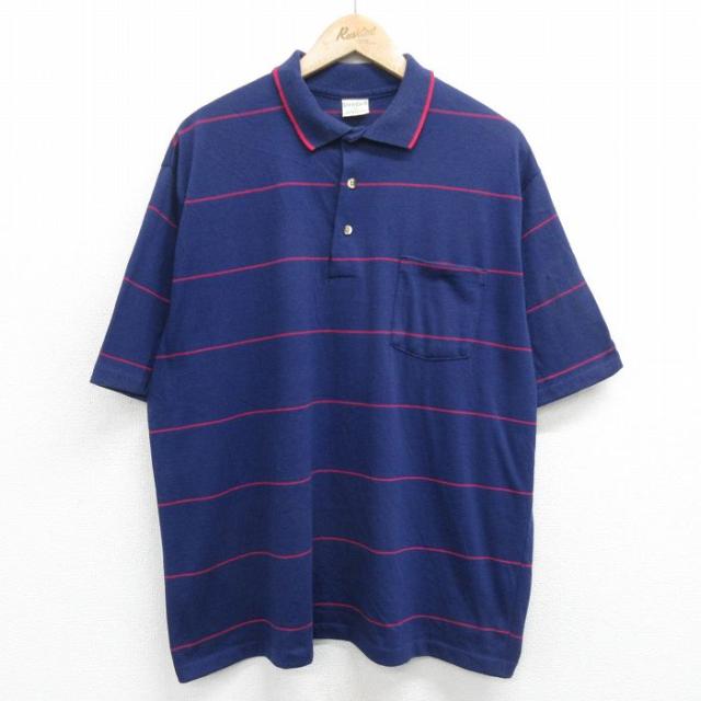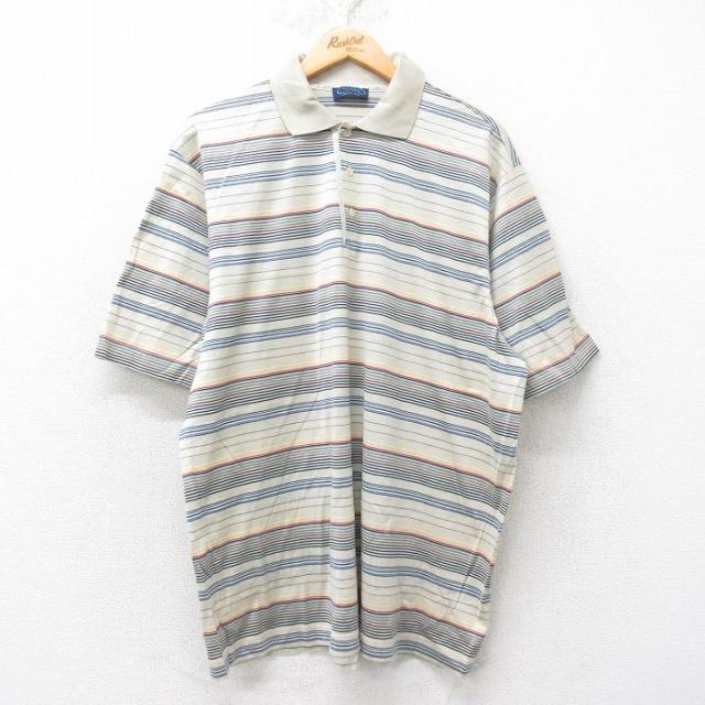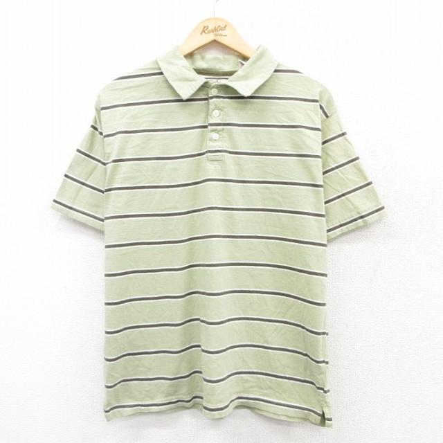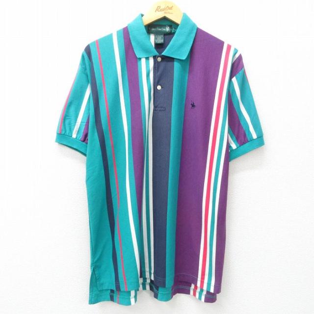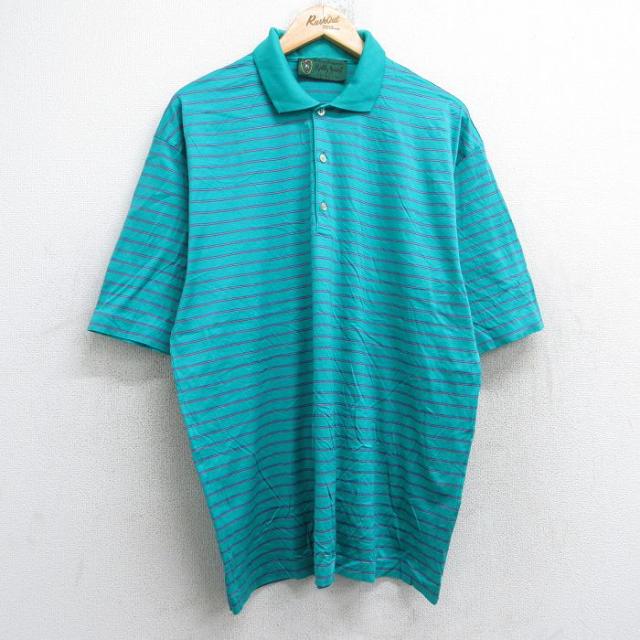 古着 半袖 ポロ シャツ メンズ 90年代 90s コットン イタリア製 青緑他 ボーダー XLサイズ 中古 トップス 中古 古着