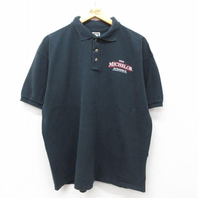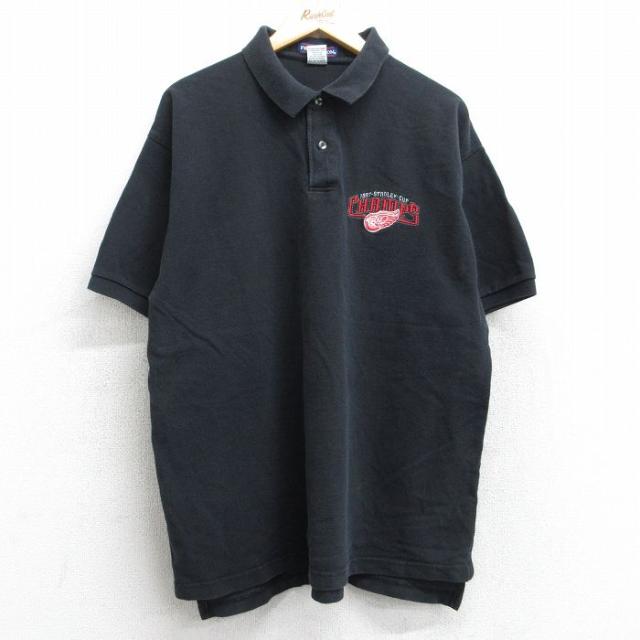 【商品名】 XL★古着 フルーツオブザルーム 半袖 ポロ シャツ メンズ 90年代 90s NHL デトロイトレッドウィングス 鹿の子 大きいサイズ コットン 黒 アイスホッケー
