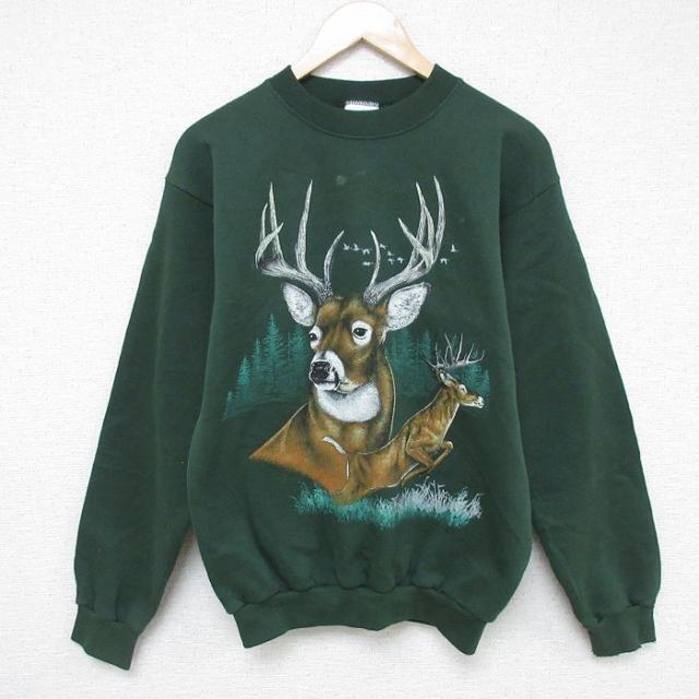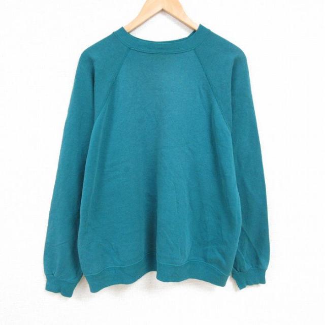 【商品名】 S★古着 ヘインズ 長袖 スウェット メンズ 90年代 90s 無地 クルーネック 青緑