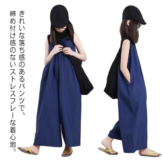 ワイドサロペット キッズ タンクトップ 2点セット 上下セット オールインワン 子供服 オーバーオール サロペット パンツ オーバーオール ワイドパンツ タンクトップ付き サロペ ワイド ゆったり 春 秋 夏 120 130 140 150 160 170