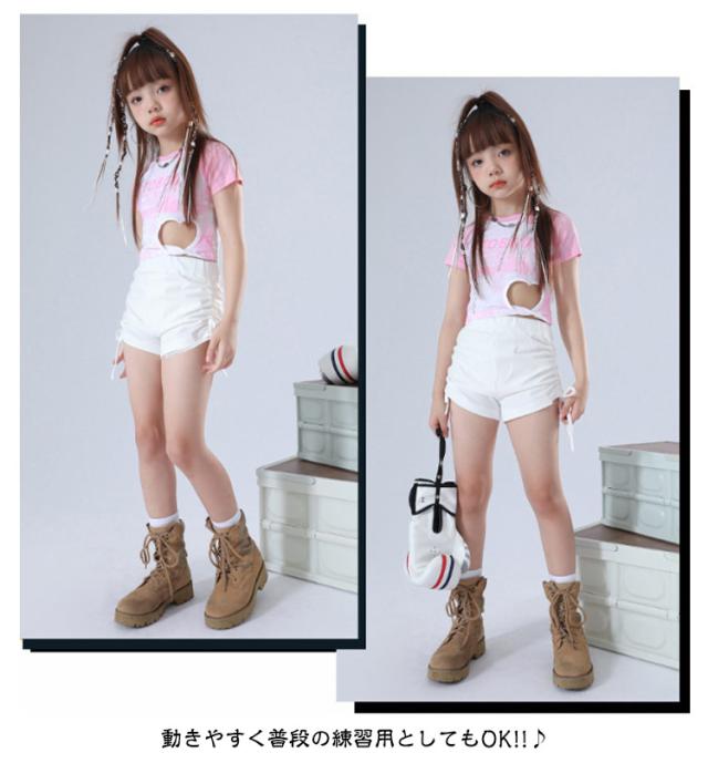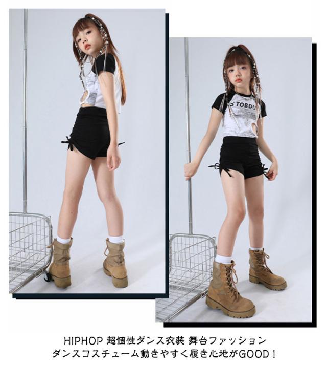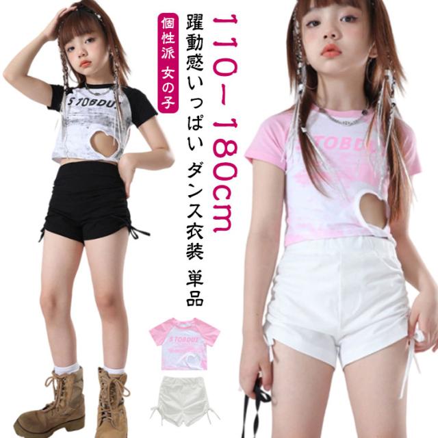 ダンス衣装 単品 ダンスパンツ 半袖 Tシャツ ショートパンツ ショーツ 女の子 キッズダンス チアガール チア 練習着 かわいい 黒 白 かわいい 舞台 hiphop K-pop 団体服 演出服 ストリートダンス ジャズダンス ヒップホップ ステージ衣装