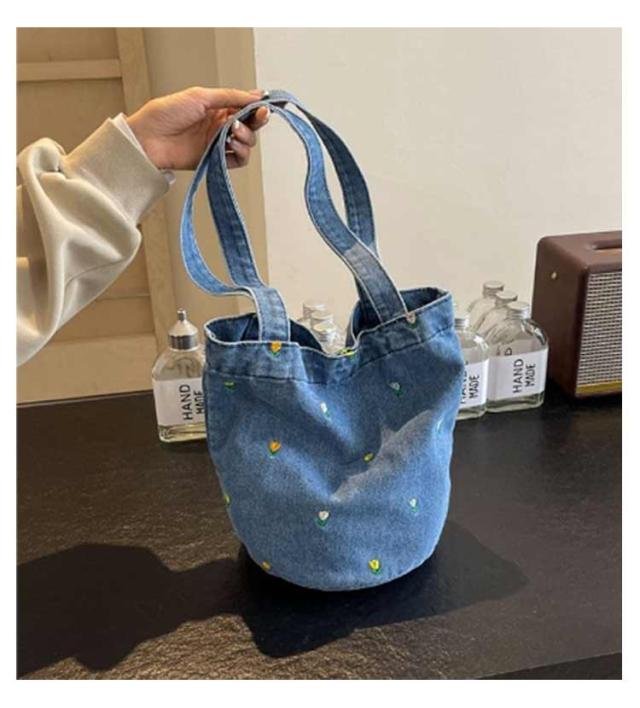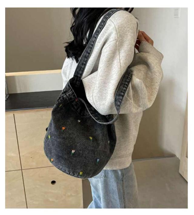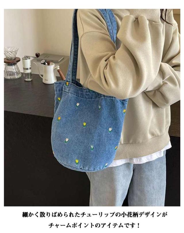 ショルダーバッグ バッグ 肩掛け チューリップ柄 小花柄 花柄 トートバック デニム生地 デニムショルダーバッグ 大容量 春 夏 秋 冬 レディースファッション カジュアル 通勤 通学