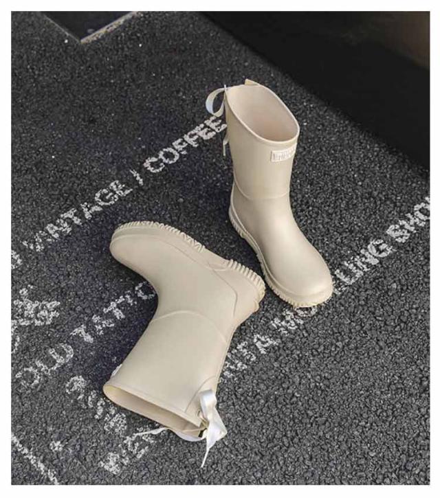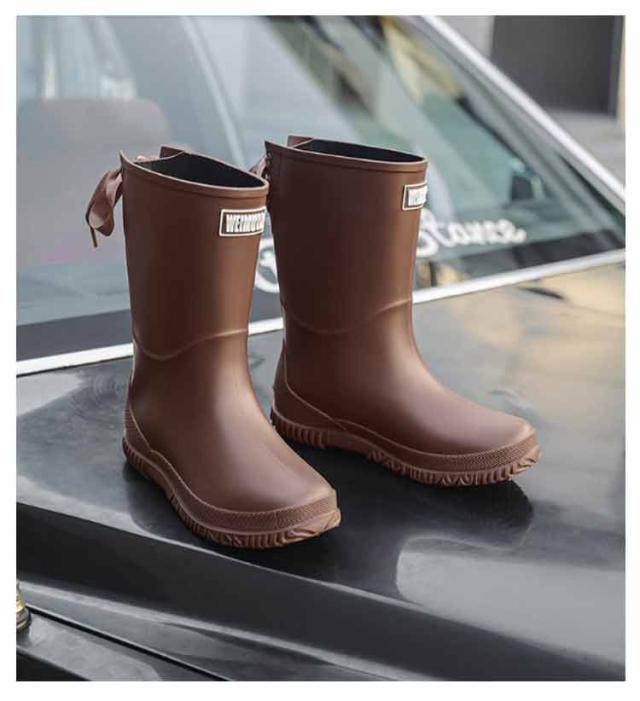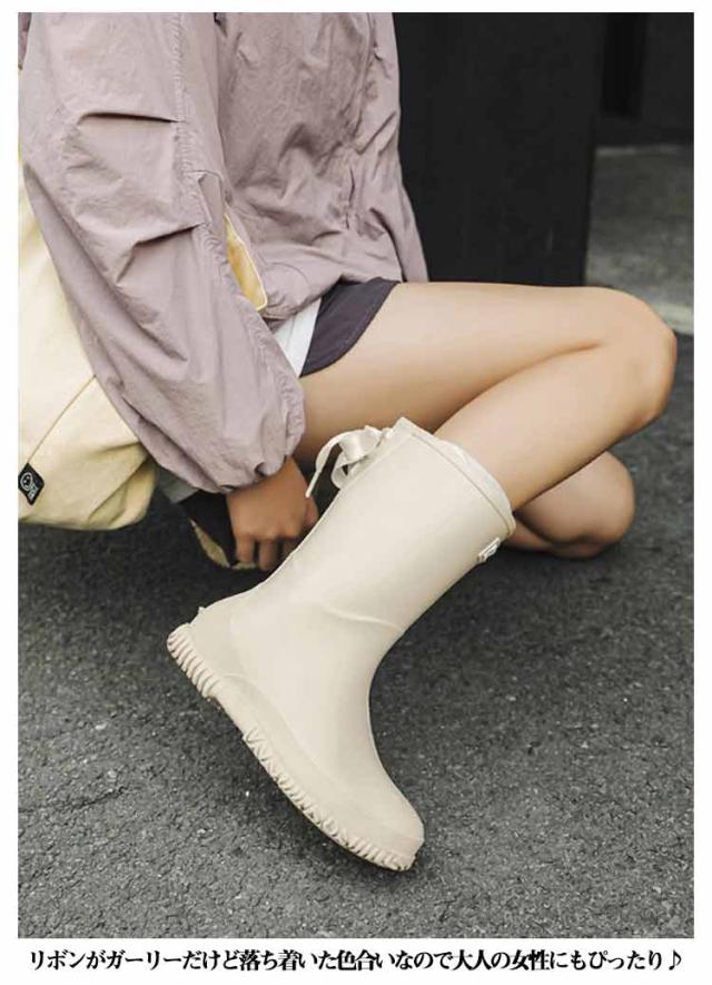 | バックリボン付きのロングレインブーツ。 一体成型なので継ぎ目がなく完全防水となります。雨や雪の日に濡れる心配がありません。 底は凹凸加工で仕様となっています、滑りにくい靴底で歩行や作業を助けます。 リボンがガーリーだけど落ち着いた色合いなので大人の女性にもぴったり♪ パンツスタイルからスカートスタイルまで幅広いコーディネートに合わせやすく、上品に着こなせます。 | |
