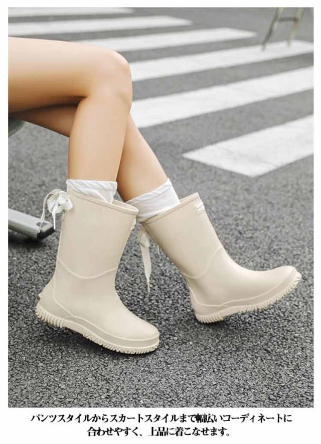 レインブーツ レインシューズ 長靴 リボン付き バックリボン 雨靴 レディース ロング丈 完全防水 おしゃれ 防水靴 梅雨 台風 対策 アウトドア 防水 靴 滑りにくい 歩きやすい 撥水 雨の日 通勤 通学 豪雨 晴雨兼用 送料無料