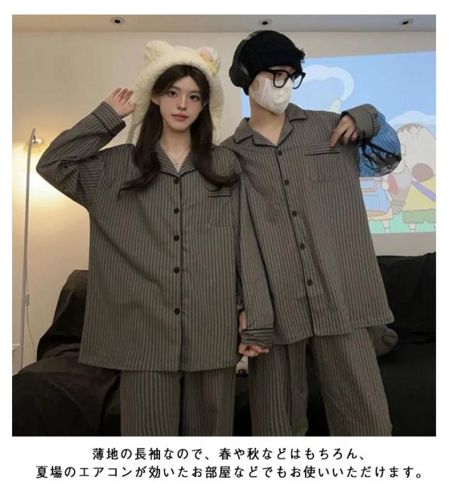 | 男女兼用の長袖パジャマ上下セット 通気性のよい素材を採用する。お肌に染み込んでいくような気持ちの良い着心地。リラックススタイルを実現しました。 男女兼用でペアルックで幸せ感が満点です。 前ボタンタイプで脱ぎ着しやすいので、入院時や授乳のときにもおすすめです。 薄地の長袖なので、春や秋などはもちろん、夏場のエアコンが効いたお部屋などでもお使いいただけます。 プレゼントとしてもオススメ、カップルお揃いも可愛いですね♪ | |